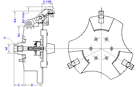 Three-jaw wheel chucks for motorcycle and automobile as well as six-jaw wheel chucks for truck applications. Efficient, high speed turning of aluminum wheels.