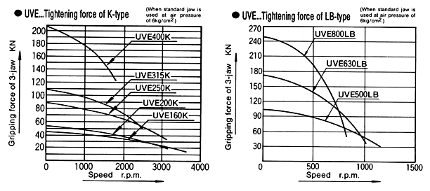 (When standard jaw is used at air pressure of 6kg/cm2)